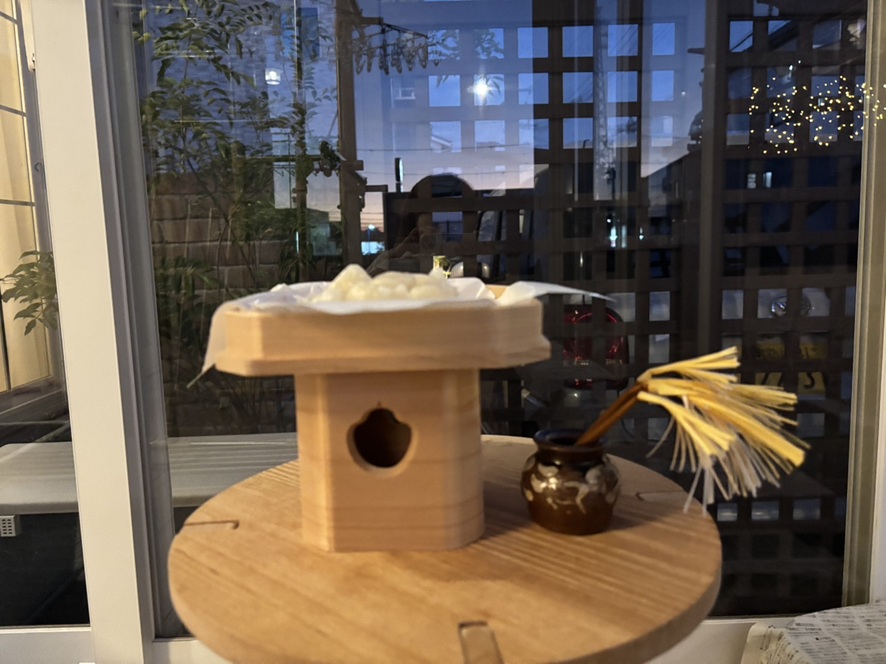 おうちごはん 2025年10月6日は中秋の名月!お月見なので早速お団子を作ってお月さんの見えるサンルームにお供えしましたっ!☆
