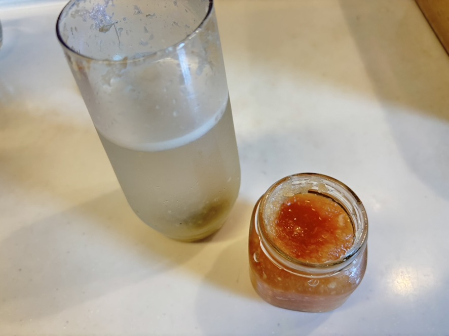 おうちカフェ 梅シロップ完成してるのでジンジャーシロップも作って梅のジンジャーエールにしましたっ♩