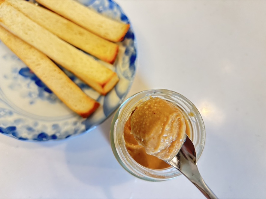 おうちカフェ 息子のピーナッツアレルギーチェックでピーナッツバターを作りましたっ!朝ごはんに早速パンにつけて食べましたが最高に美味しかったですっ♩