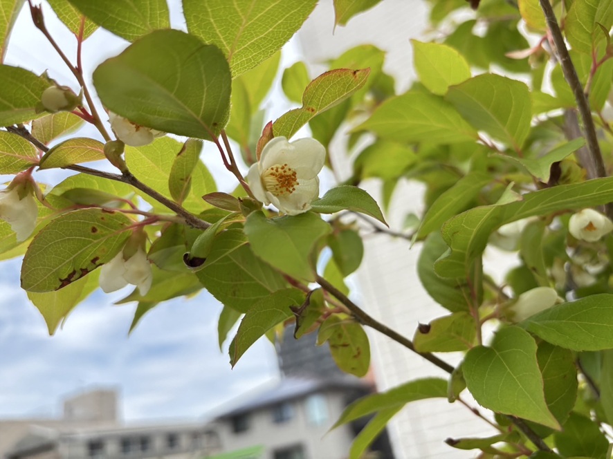 家の庭に咲いてる記念樹のヒメシャラが今年もしっかり花を咲かせましたっ☆!散った花びらはポップコーン(笑)