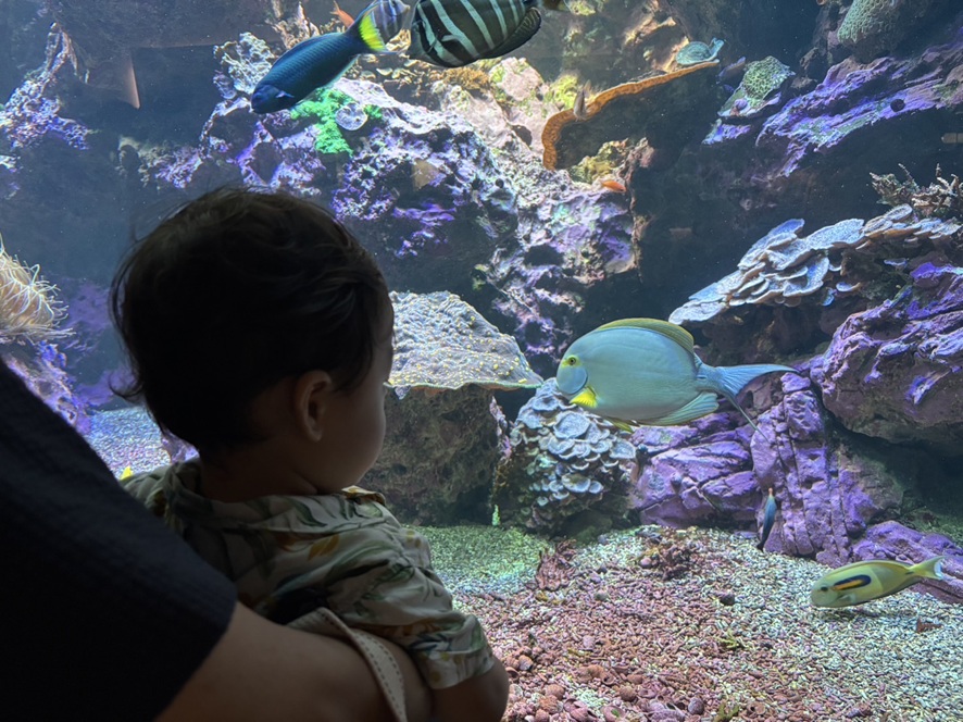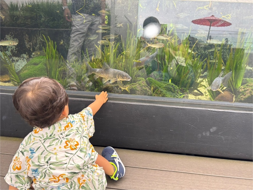 カラフルなお魚たちを真剣に見て指さしたり声出したり