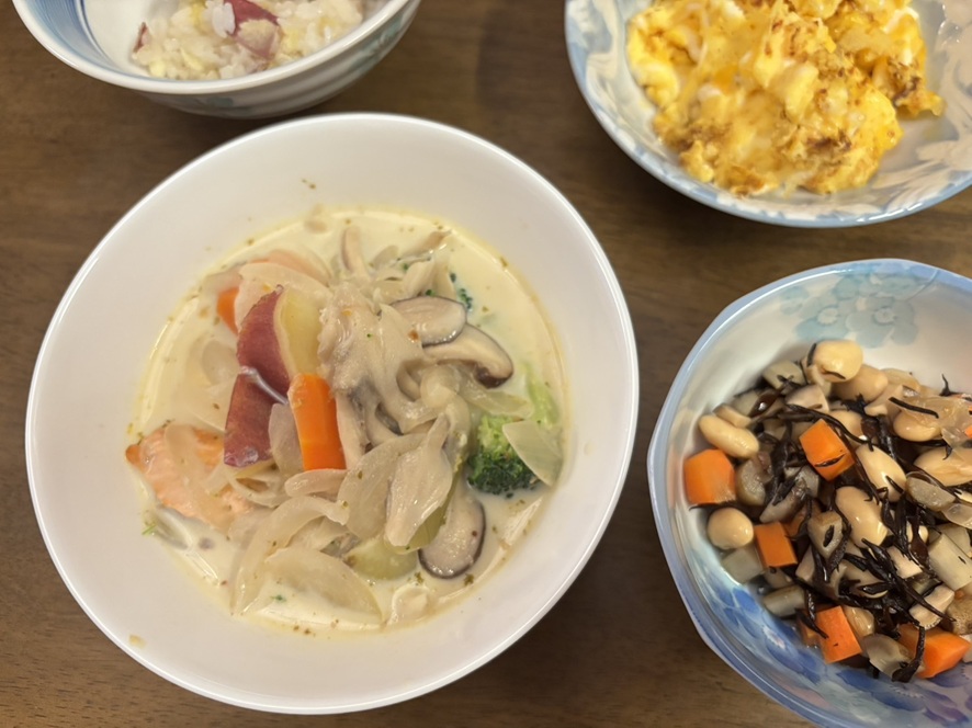 大好きな五目豆も追加で作って秋を感じる献立にしました