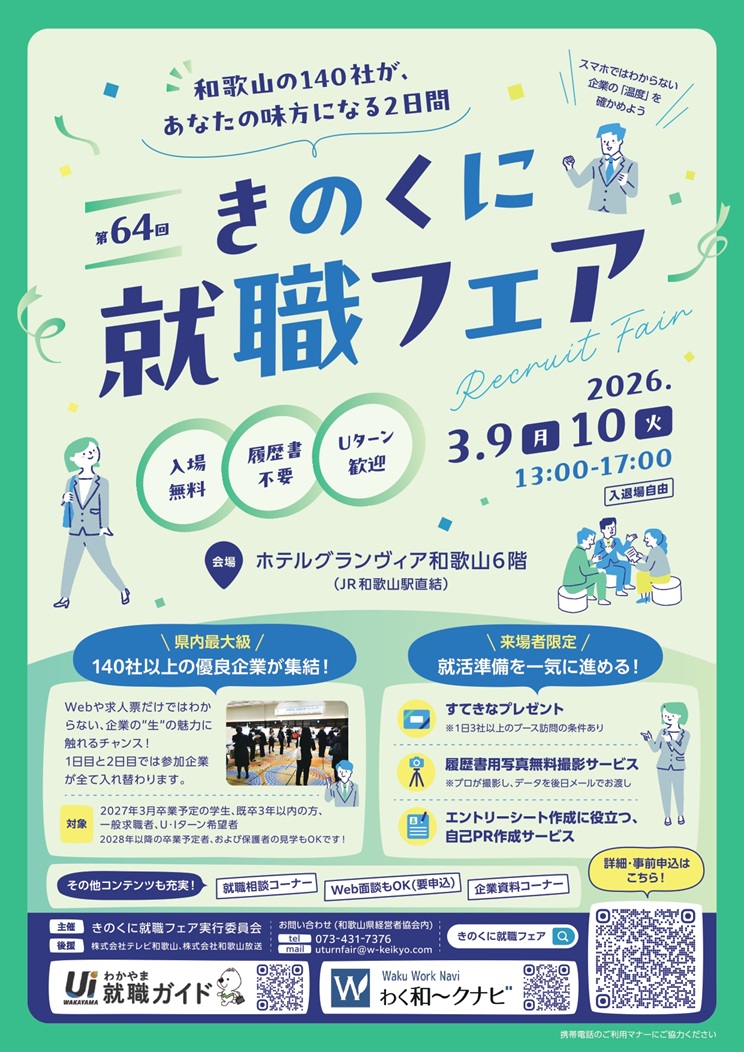 ★本日3月9日★『第64回きのくに就職フェア』に出展いたします!2026-03-09