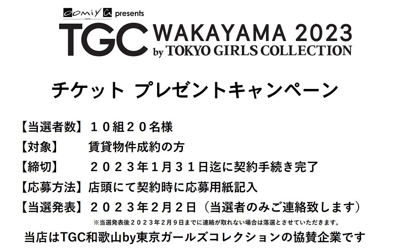 TGC WAKAYAMA by TOKYO GIRLS COLLECTION チケットプレゼントキャンペーン2022-12-23