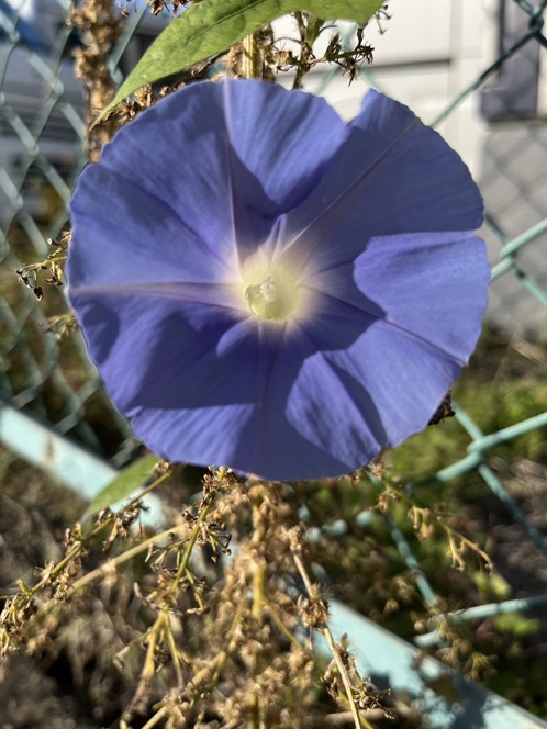 お父さんから季節外れの朝顔が咲いてる!ってLINE来たので早速ブログにのっけちゃいます♪めっちゃきれいな紫の朝顔!2024-11-14
