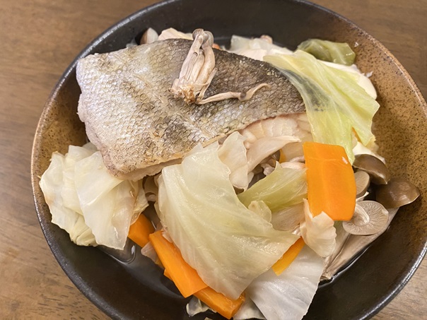 おうちごはん 息子の離乳食の残りのタラでタラの酒蒸しを作りました♪ほっこりと冬の味ですね~2024-11-23