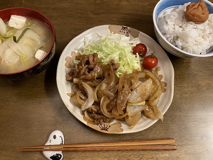 先日の晩ごはんは豚の生姜焼きでした