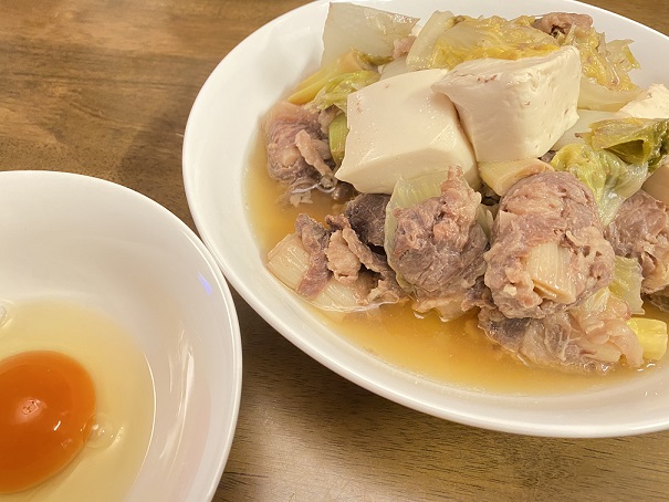 それかネギと牛に焼き目が付く程度焼いて上から白菜とお豆腐乗せて