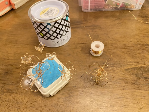 ワイヤーで花びらになるように谷折り山折り、反らせたりを繰り返して