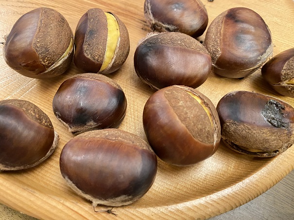 ピザ窯に入れて焼くとか栗ご飯だったり秋の味覚ですっ
