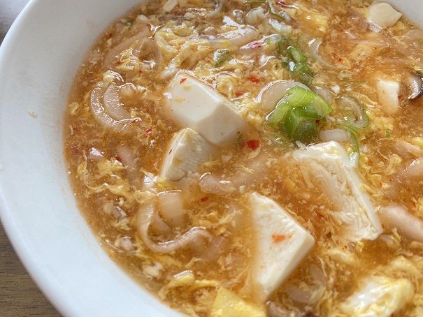 かき混ぜる時に絹豆腐はほんとに崩れやすいから出来るだけ崩れないように