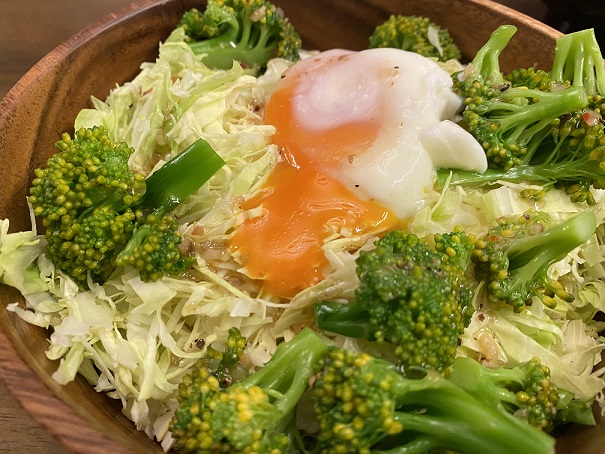 最近の毎日サラダに温泉卵を乗せることが多いんですが