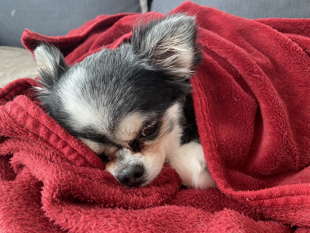 最近のお犬さん 寒い時はブランケットにくるまって縮こまってるお犬さんが可愛すぎる件♪2023-01-16