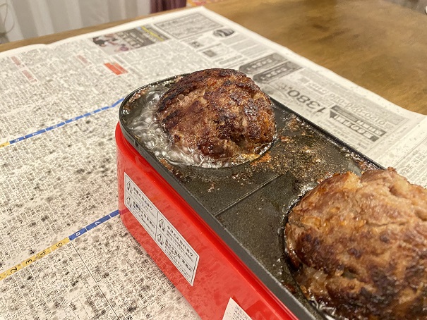 先日、特大たこ焼きメーカーでハンバーグを焼きました