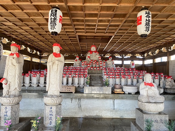 いろんなお地蔵さんがずら~と並んで鐘を鳴らす前に私はどこから来た何々です!って