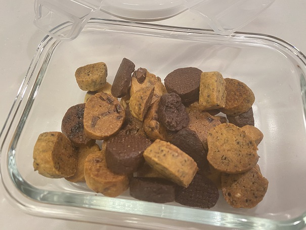 おうちカフェ コーヒー、アールグレイ、チョコチップ、ココアの4種類のアイスボックスクッキーを作りましたっ☆2023-03-24
