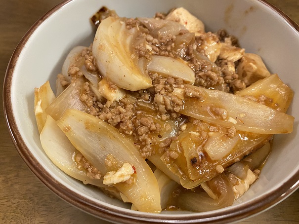 おうちごはん ごろっとたっぷり新玉ねぎの麻婆豆腐丼を作りましたっ♪2023-05-01