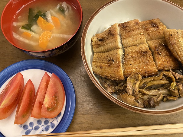 脂っこいうなぎなのでさっぱりとトマトもカットしてちょっと季節外れの大根のお味噌汁