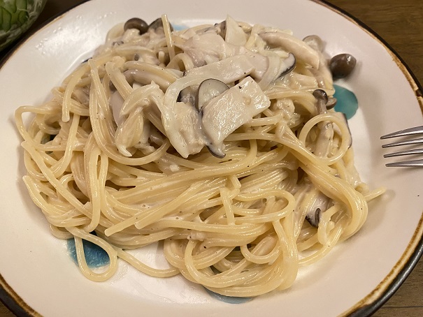 スーパーに行ったら無性にきのこのクリームパスタを食べたくなって