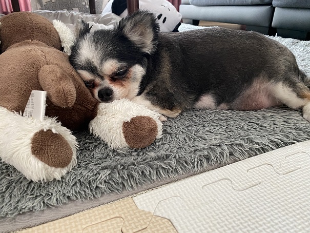 お犬さんのお友達と一緒に寝ててかんわいい~~~~