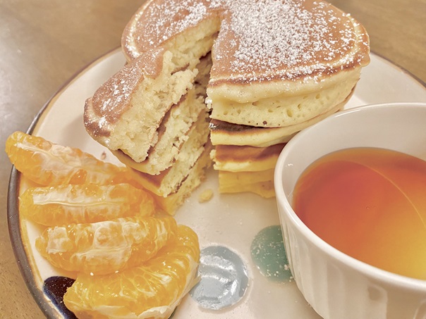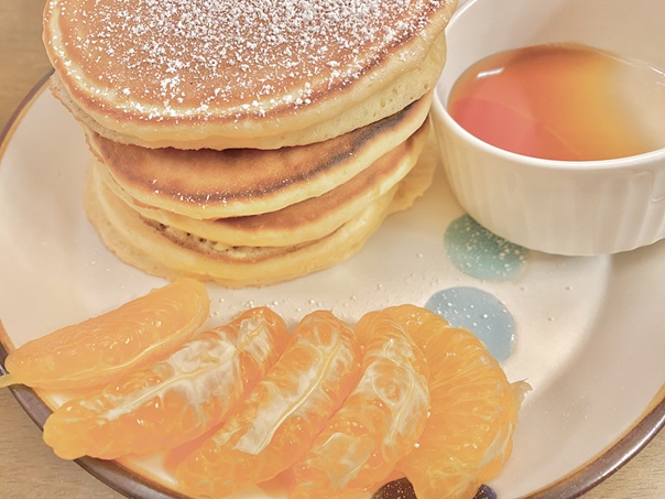 私の作るホットケーキは牛乳を入れないので甘さは控えめになるので