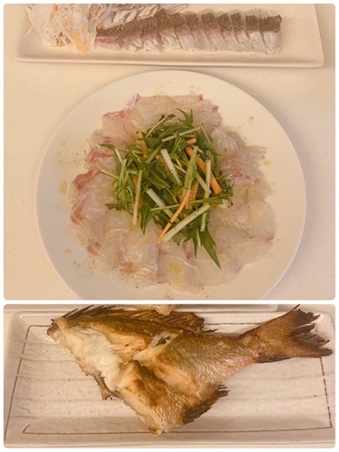 鯛はお刺身に、クロソイは焼魚でおいしく頂きました~