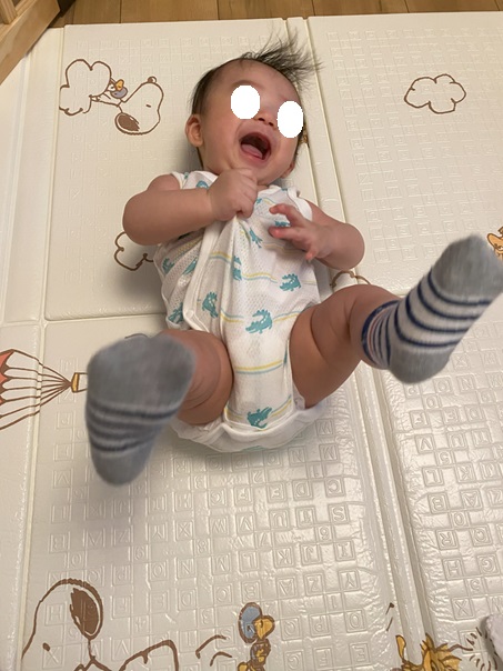 靴下履かせたら足の裏が初めての感覚なんかめっちゃ笑ってました