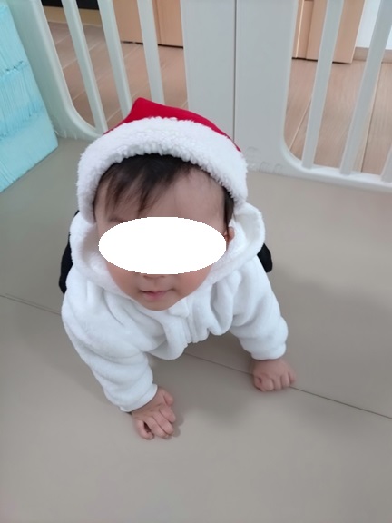 サンタ帽子とサンタスタイはママ友から借りてちびサンタになりましたっ