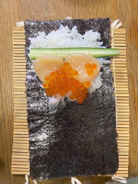 ホタテとキュウリ!これだけだとシンプルすぎたのでイクラを入れて