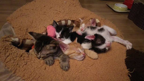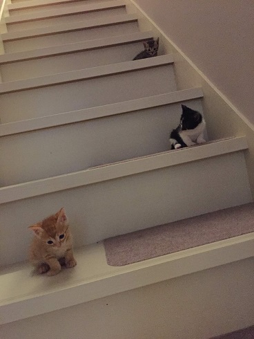 親猫がバタバタそれをみて子猫たちもバタバタ