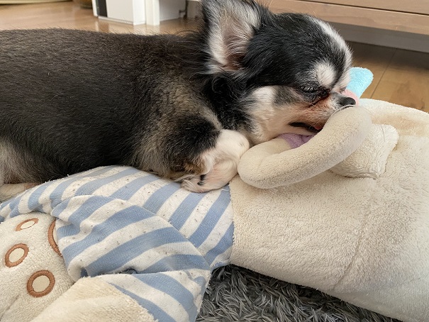 おもちゃとクマさんの上が落ち着くんやろうな~~