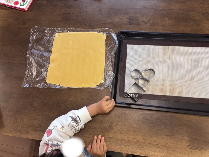 息子が寝てしまって私1人で伸ばしたクッキー生地さんが
