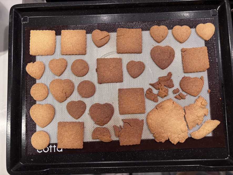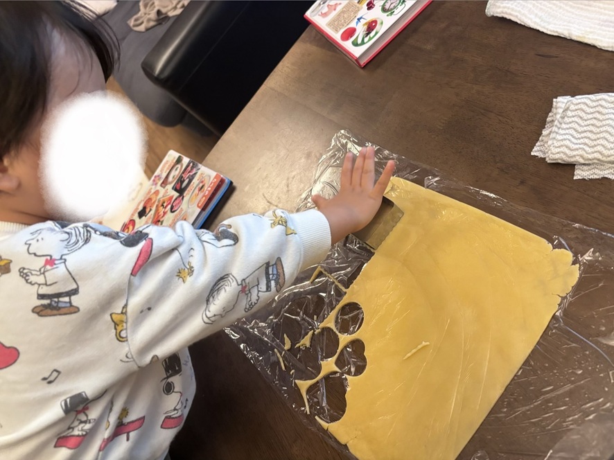 2月14日の Happy Valentine に向けてクッキー作りっ!いよいよ息子と一緒に型抜きして焼きます☆生地が薄い分綺麗に型は抜けたけど焼き色が濃くなりました!プレーンやけどココアみたい2026-03-01