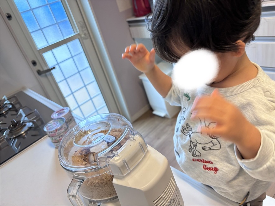 台所育児!息子の朝ごはんに出してる食パンの食べ進めが最近少し悪くなってきたので味変できるようにピーナッツバターを一緒に作りましたっ♡♡2026-03-08