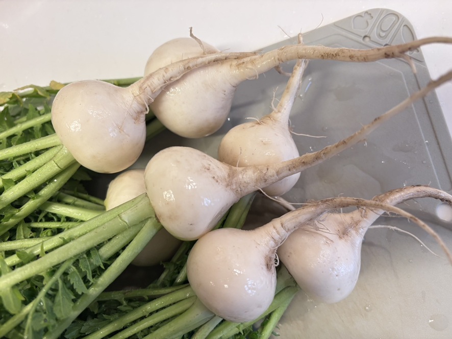 実家で植えてる根野菜で大根とコカブは引いてみやんと