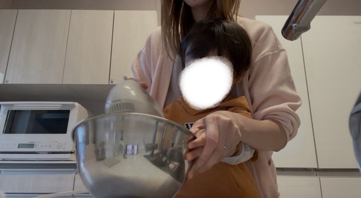 その後もハンドミキサーで混ぜなきゃムーブの息子やから