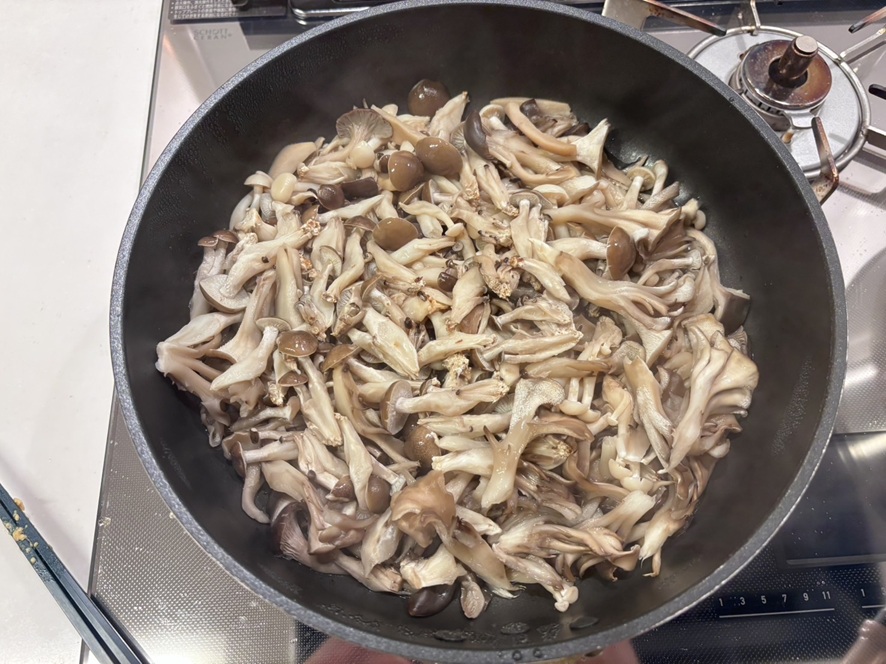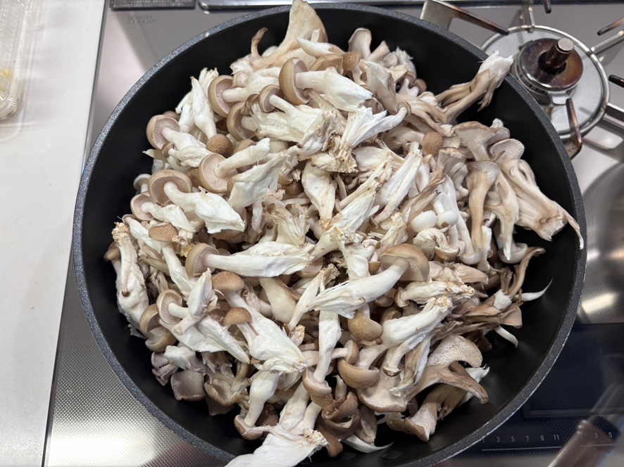 スーパーの特売でキノコがまとめ売りしてたので大好きなキノコの酒蒸しを作りましたっ♪♪キノコ4つじゃ少ないかな〜思って5つ入れたらとんでもない量に(笑)2026-04-08