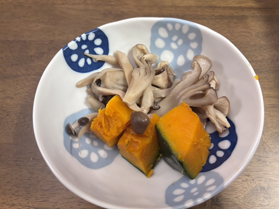 かぼちゃの煮物の付け合わせでキノコの酒蒸し😌👍🏻