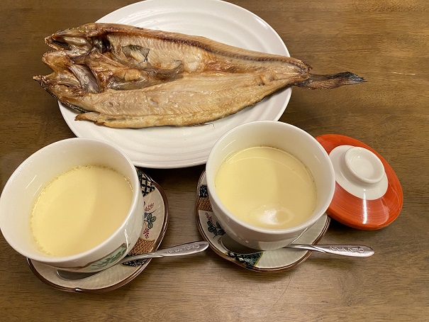 北海道フェアで買えたほっけと自家製茶碗蒸し2021-09-09