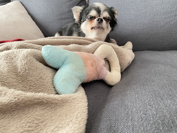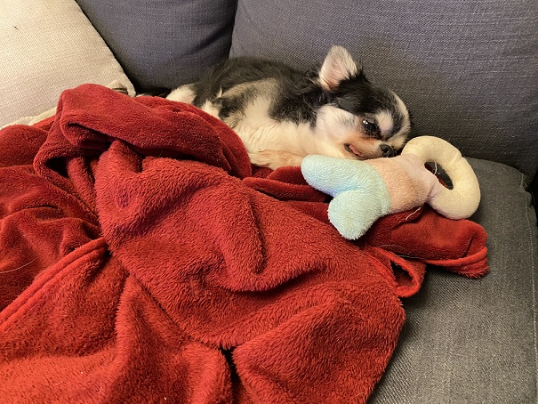 最近のお犬さん事情 寒くなってソファーの毛布にくるまって寝てますかわいい♡♡2021-10-25