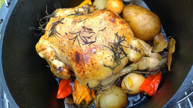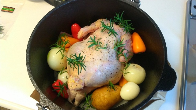 鶏丸ごと一匹ちょっと高かったけど売ってたのであの大きな鉄鍋でローストチキン作りました!2021-12-25
