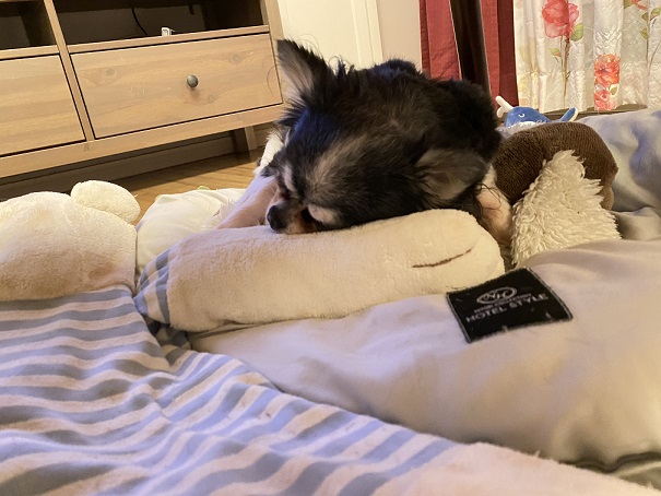最近のお犬さんは友達の人形のお犬がお気に入りで