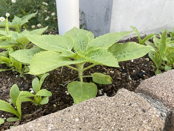 ひまわりも茎が太くなって葉っぱもたくさん出てきました