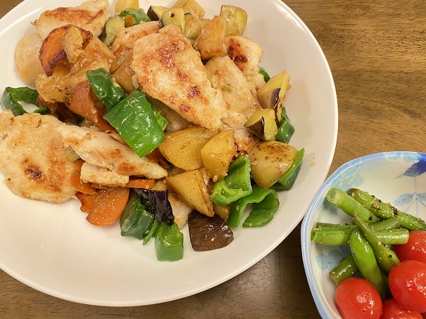 夏野菜をふんだんに使った鶏肉と夏野菜の塩麹炒め作りました