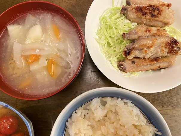 手羽中の塩麹焼きと塩麹のお味噌汁