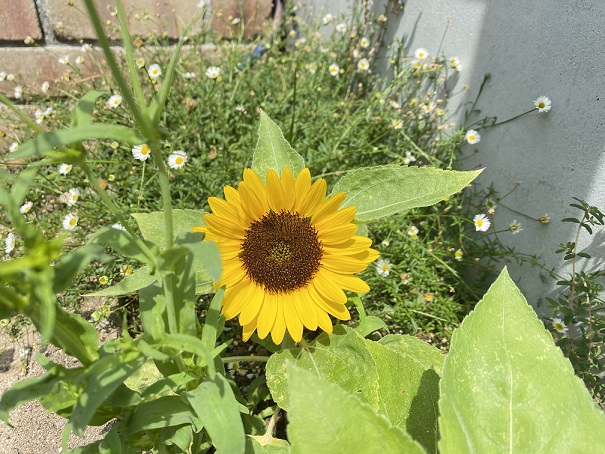 お家の花壇に植えてるヒマワリが大きく花を咲かせました