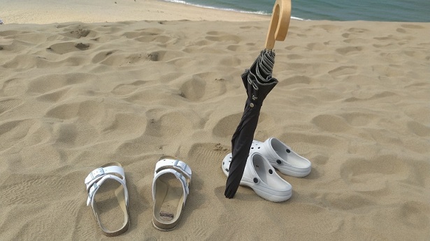 スニーカーだったら中に砂入っても出すの大変やからってことで