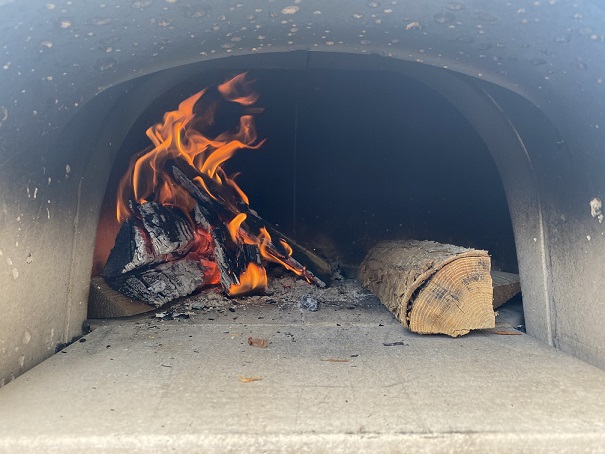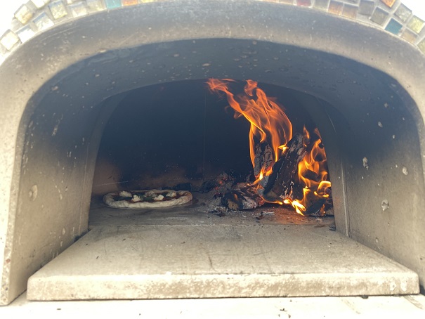 窯の中の温度が250度~300度になったらピザを入れます!
