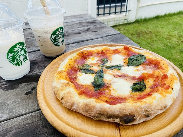 おうちカフェ 久しぶりにピザを焼きました!スタバが近くに出来たのでフラペチーノと♪2022-09-15