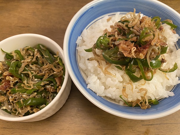 ピーマンとジャコの相性がめっちゃ良くって最高にご飯が進くんでしたっ